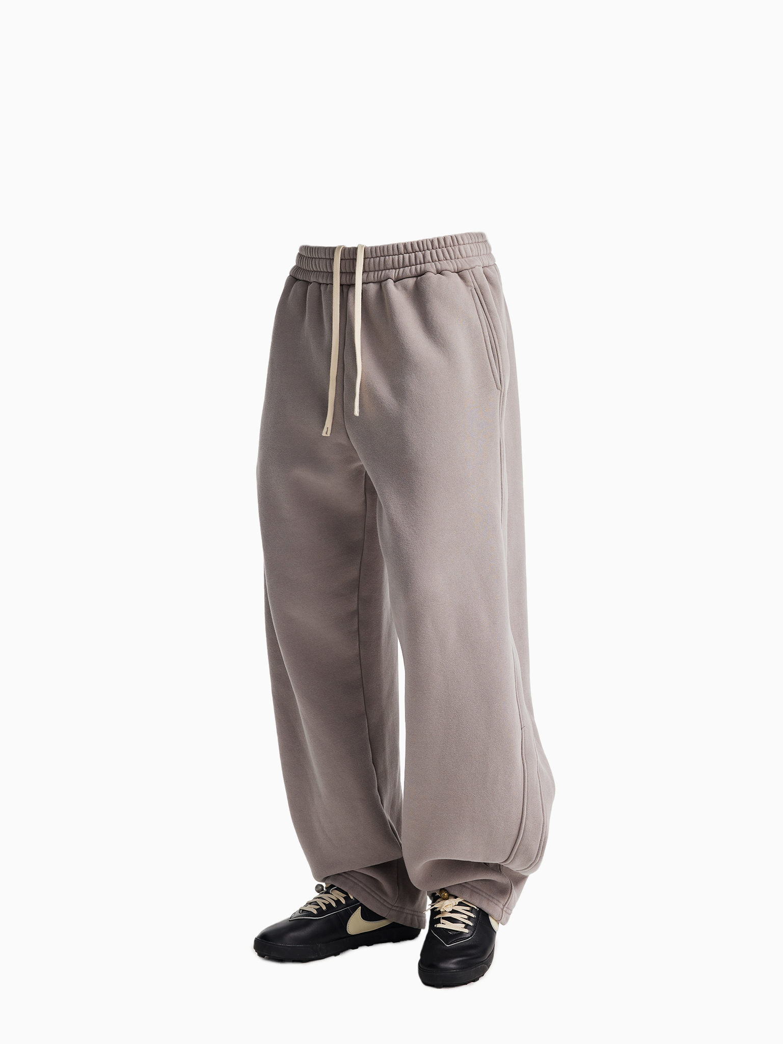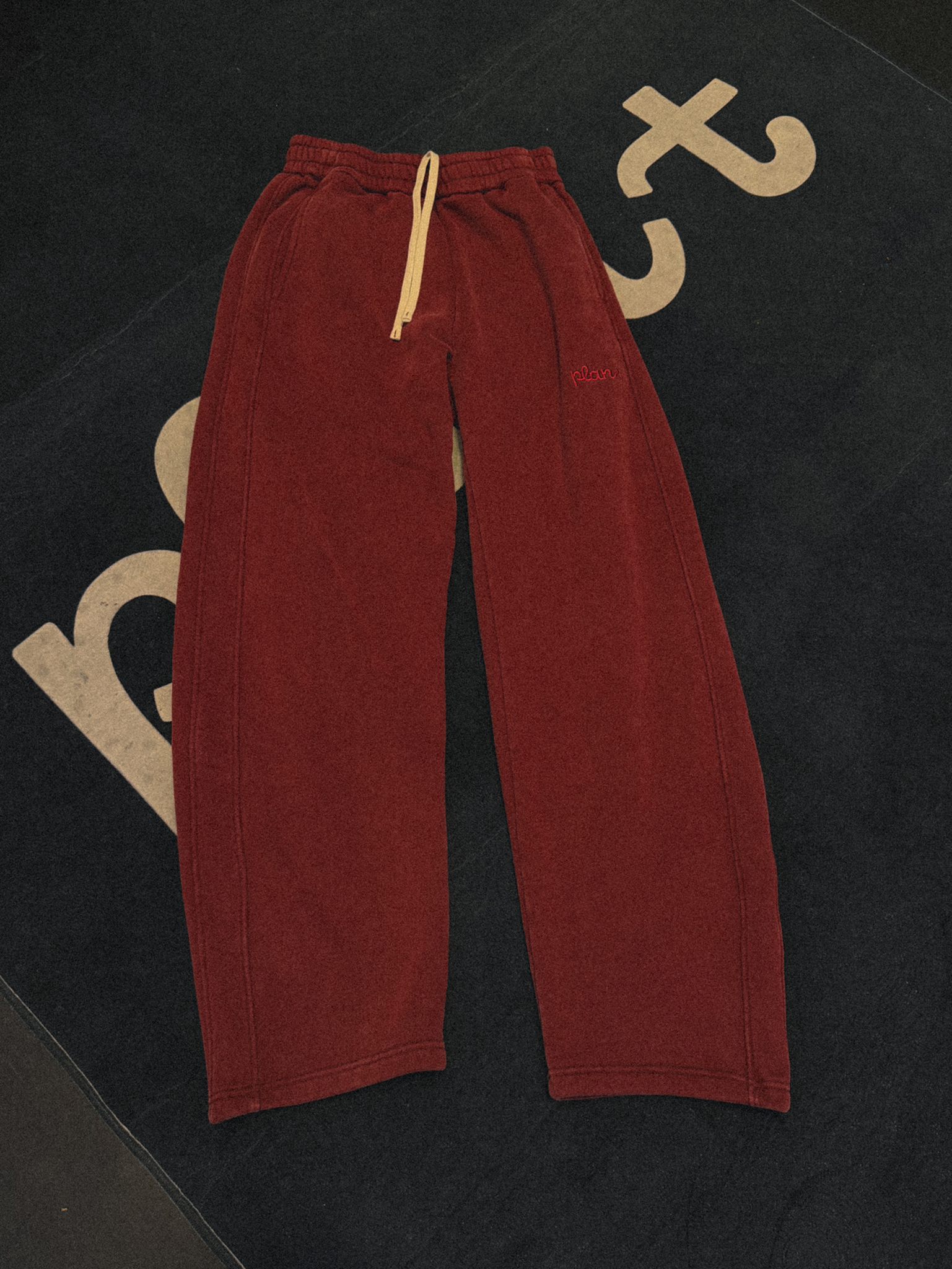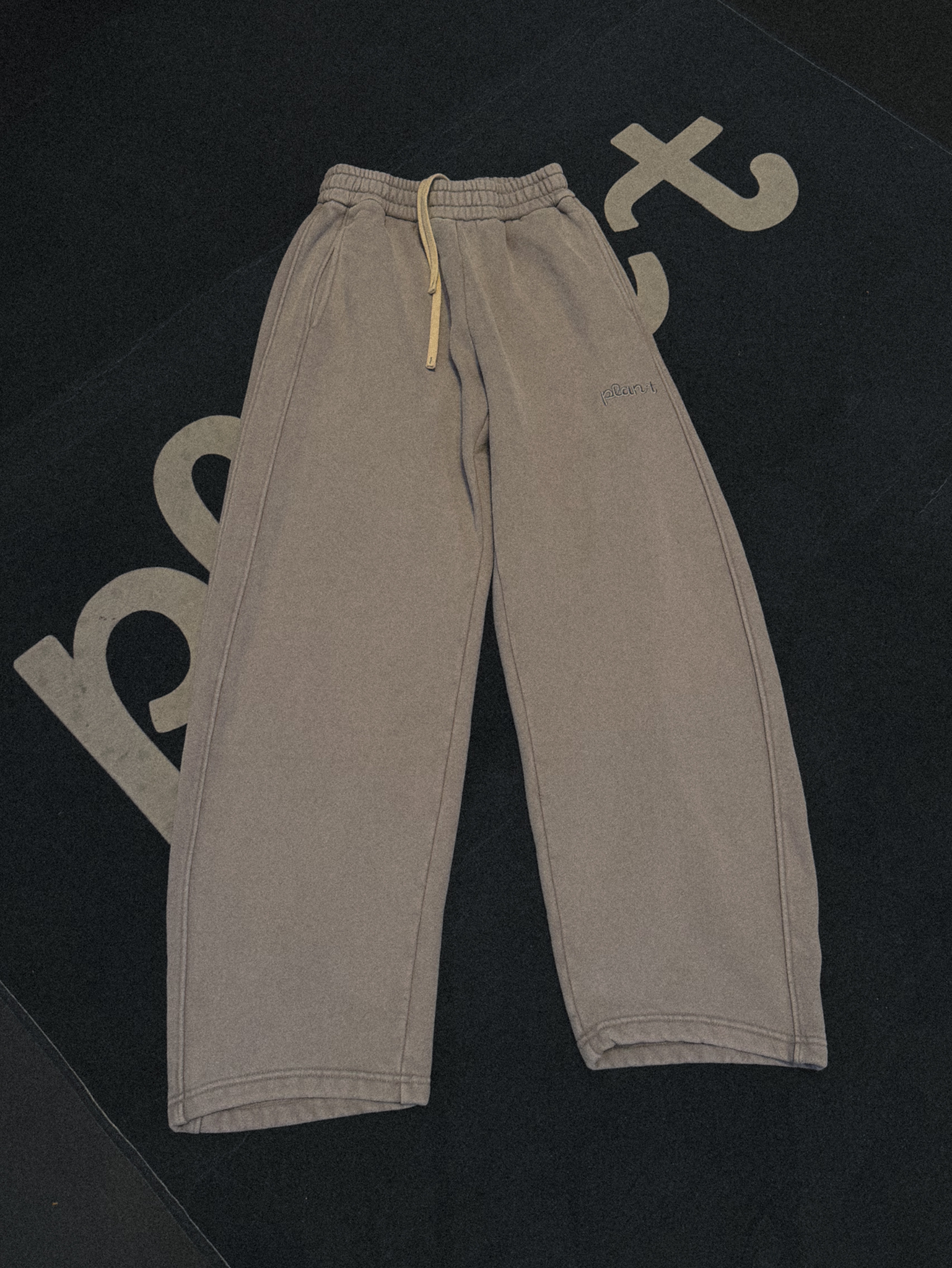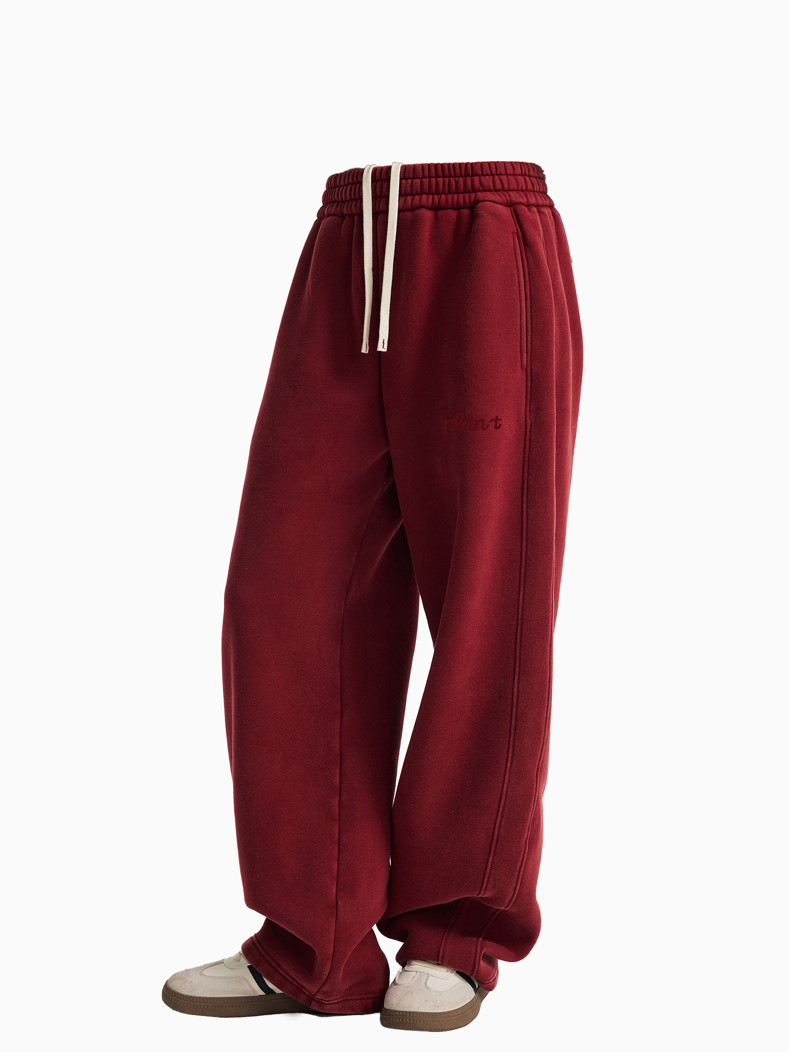 מכנס בגזרת אוברסייז מבד פליז כבד, רקמת הלוגו שלנו בצבע הבד -